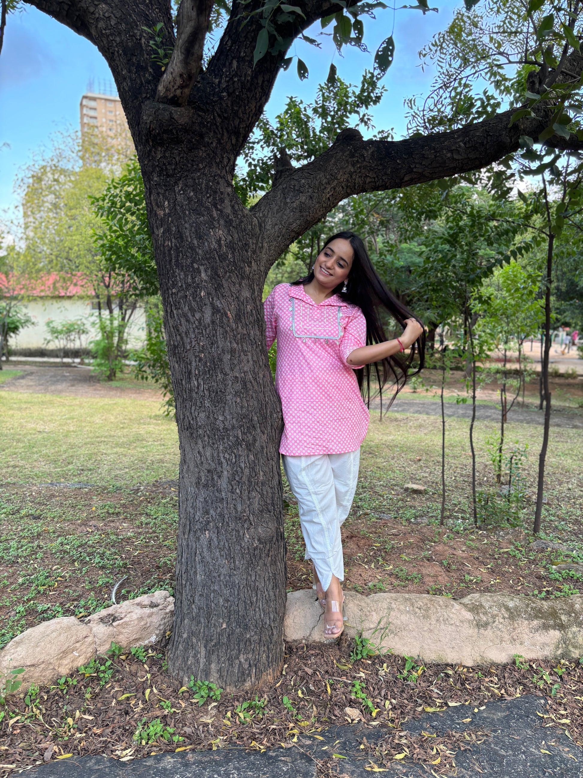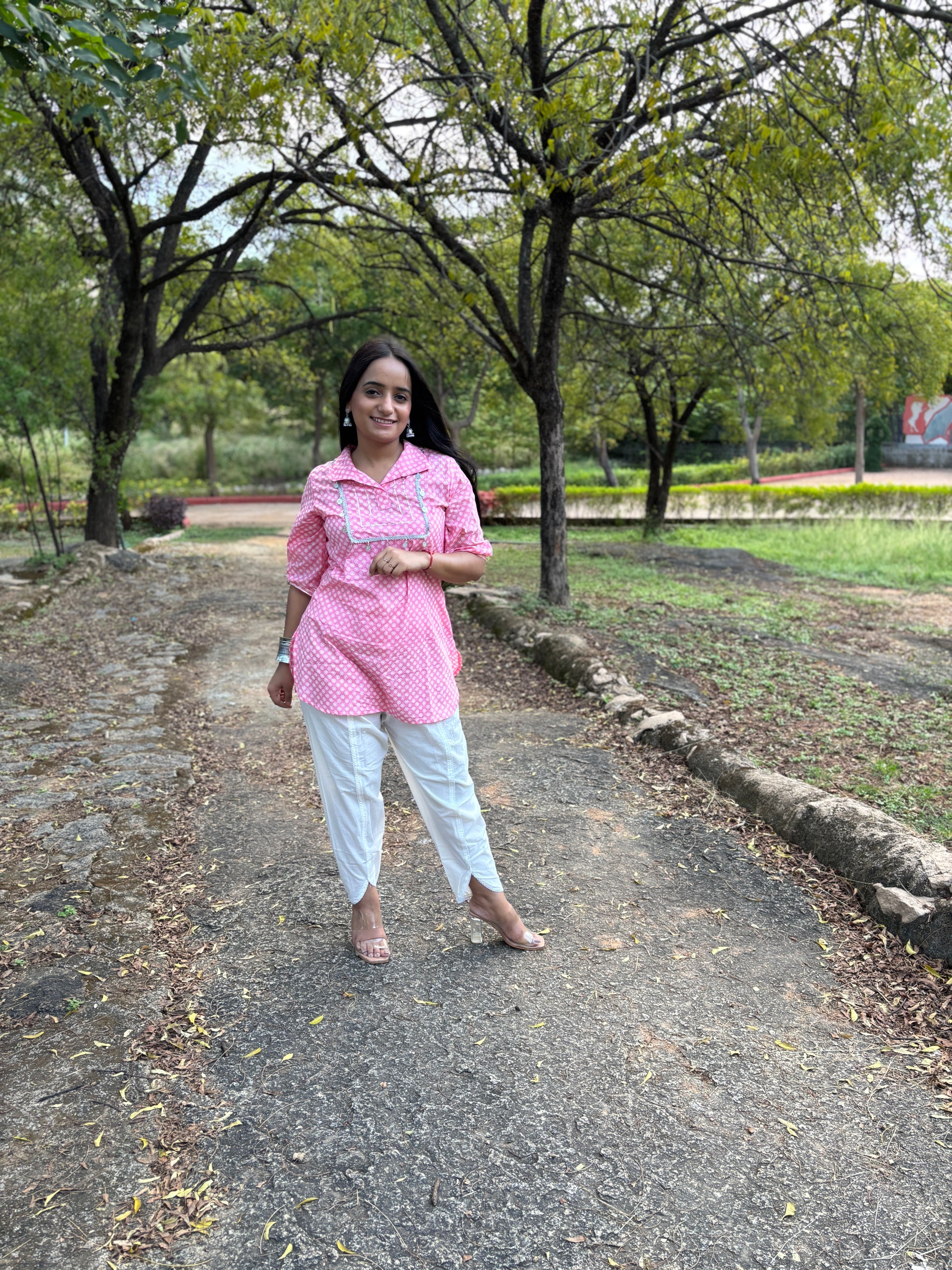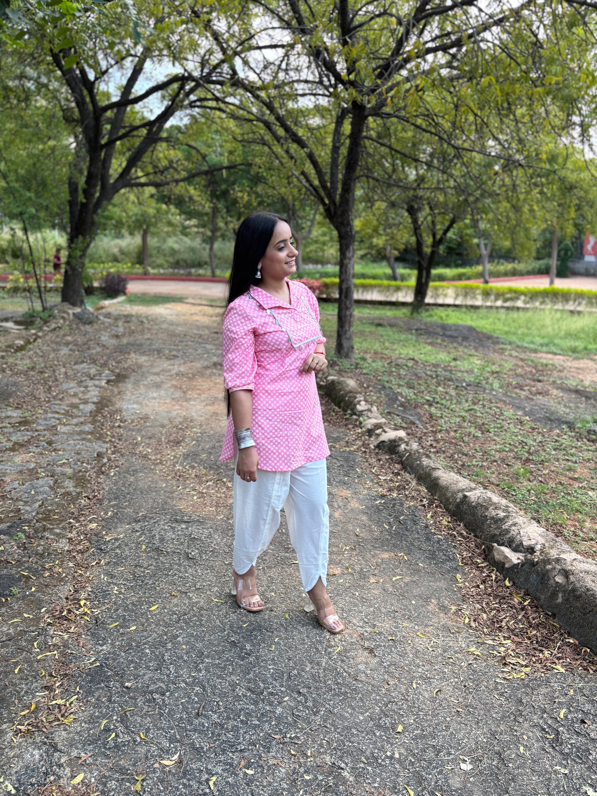 Bright, breezy, and impossibly pretty — Gulaabo is your go-to kurti for days when you want comfort wrapped in charm. The soft pink cotton paired with dainty white detailing creates a look that feels playful yet polished. Its relaxed fit and easy silhouette make it perfect for strolls, coffee dates, or simply stepping out with effortless confidence.
